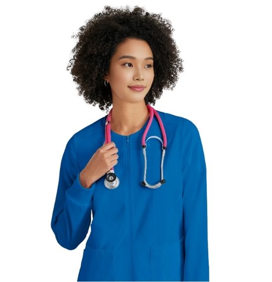Keep on flexing with Gianna, a medical warm-up jacket that goes the distance. How? It stays looking clean and smooth through your entire shift by resisting wrinkles, dirt, and static. This style is also made with antimicrobial finish to protect against mildew, mold, and odor.